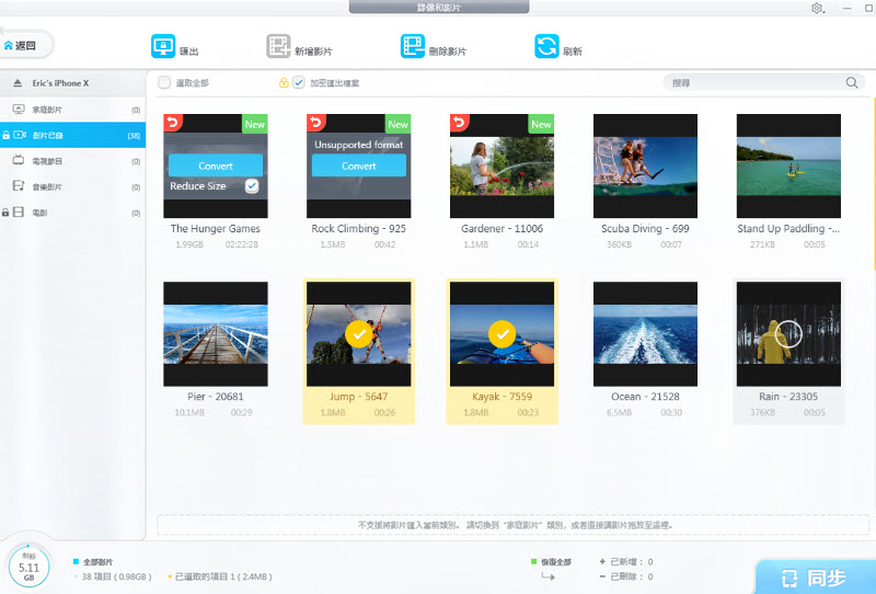 匯出 iPhone 4K 影片,以避免手機儲存不足。大影片最高可壓縮 50%,無觀看質損。